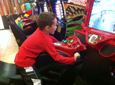 The Boardwalk had a glow in the dark mini golf course that we kept telling the kids we would take them to, but we only made it there 20 minutes before it closed and Kamdyn decided that Campbell would be scared since it was so dark! I think Kam was secretly the one who was leery of it! So we found an arcade instead and let them play for a while.